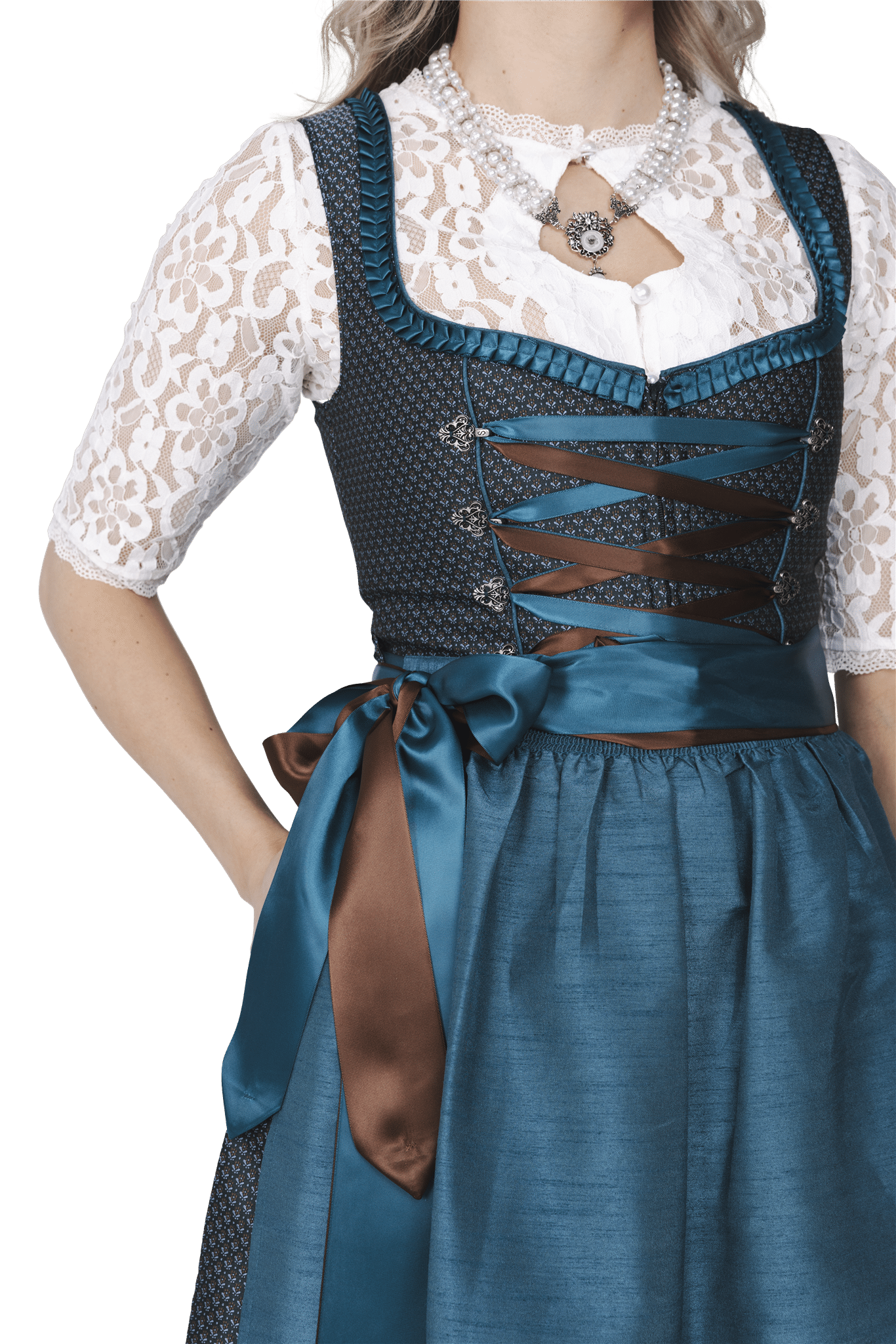 - Dress: 100% jaquard, inner lining 100% cotton satin, lace apron, (H-2910 and H-2945 have a double apron, satin/lace), without Dirndlblouse