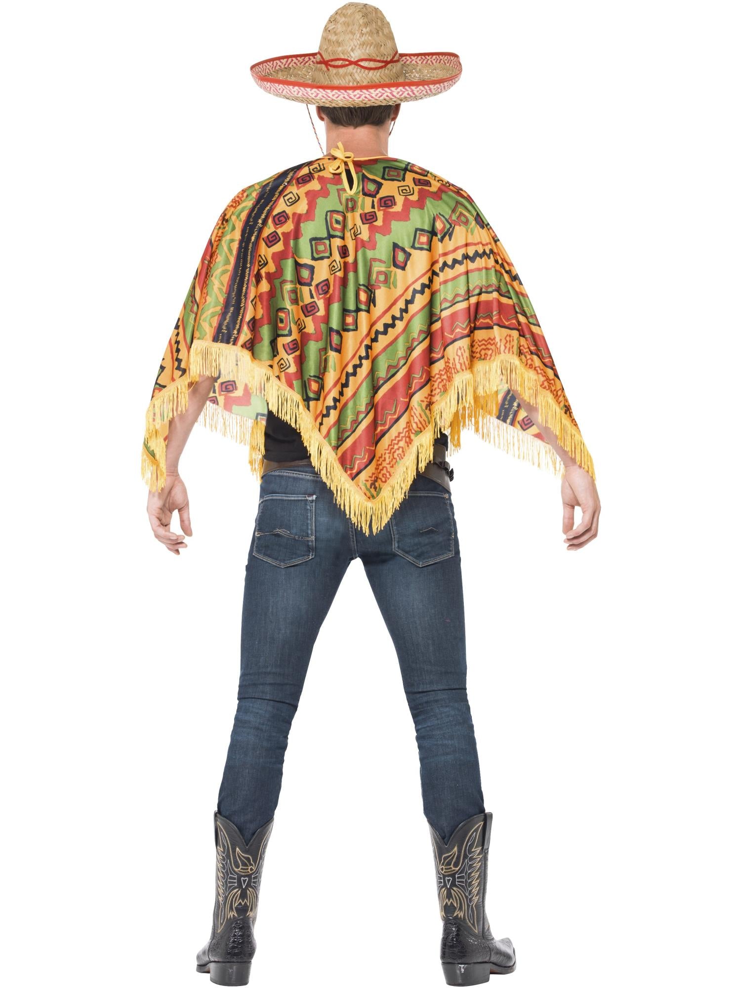 Mexíkana slá (poncho) þessi er í áberandi orange lit og yfirvaraskeggið fylgir.