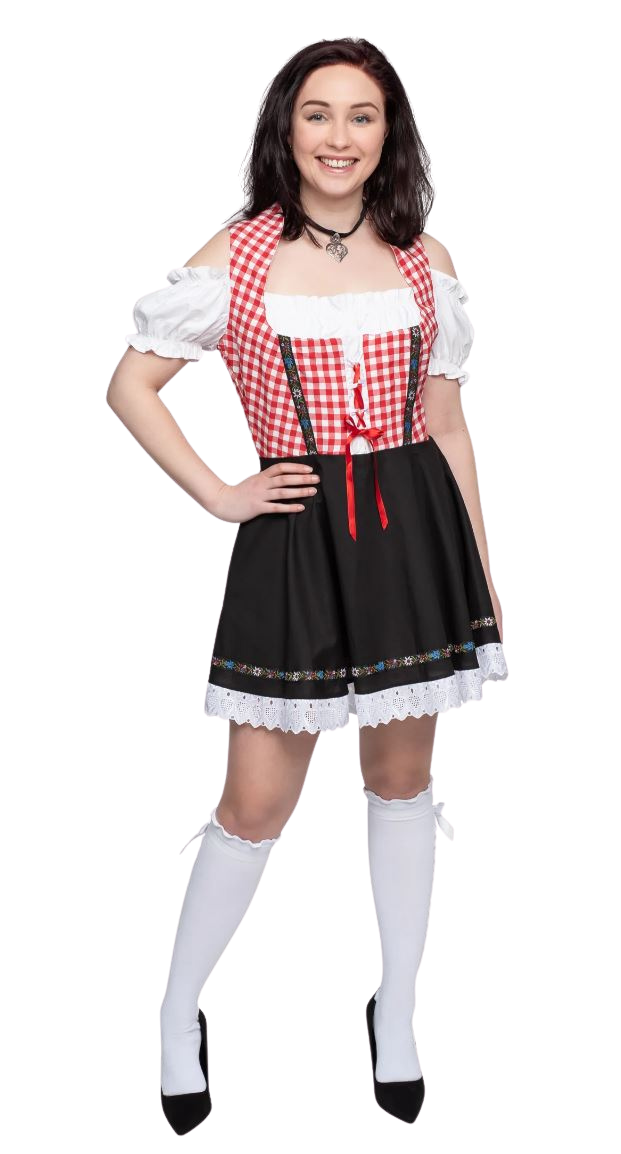 Októberfest Dirndl Svartur, Hvítur og Rauður m/ Svuntu og Blússu