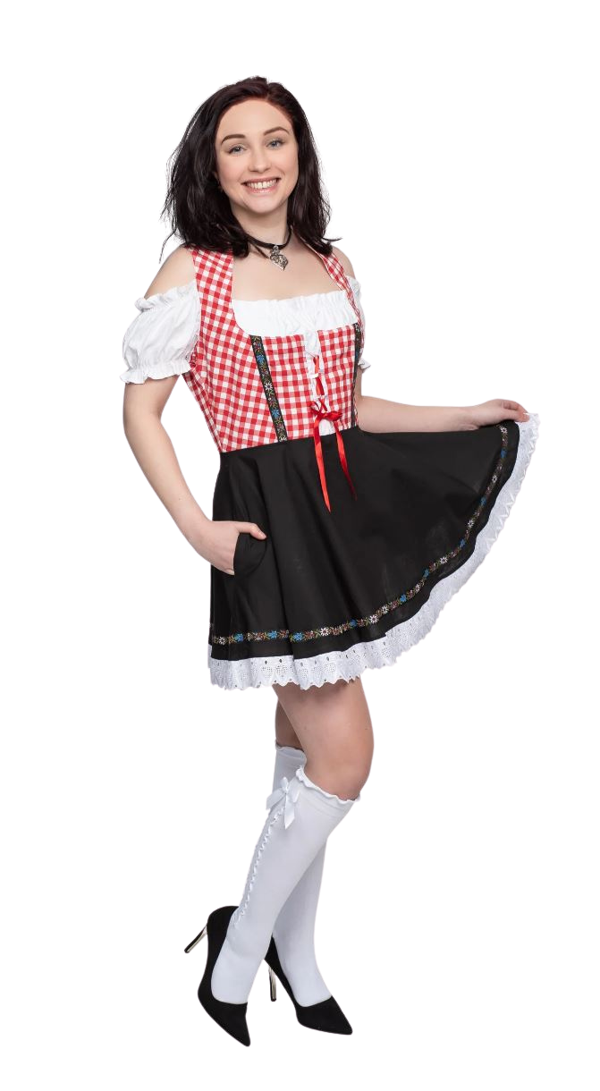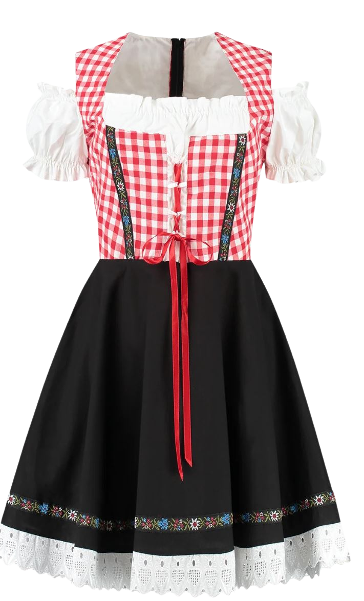 Októberfest Dirndl Stuttur Rauður og Hvítur