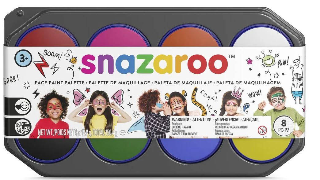 Fullkomið fyrir mörg tækifæri! Drjúgt sett sem nota má í allt að 400 andlit og svo er hægt að smella nýjum lit í þegar að klárast. Frábært í leikskóla, skóla, íþróttaviðburði  og þar sem að margir koma saman.