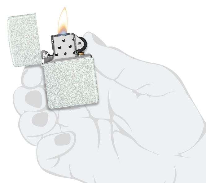Zippo Glacier Matte er hvítur með hrjúfri ljósri áferð sem minnir á ískalt jökulundirlag